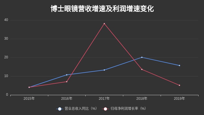 2017年至2019年,博士眼镜营收分别约4.71亿元、5.66亿元及6.55亿元,对应增速分别为13.31%、20.1%及15.72%。